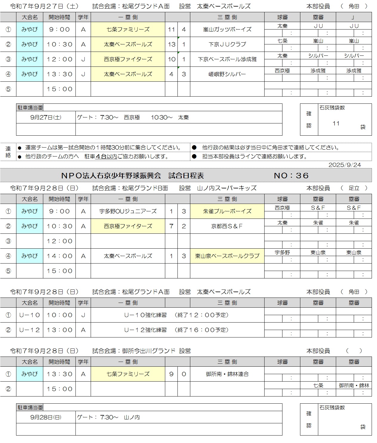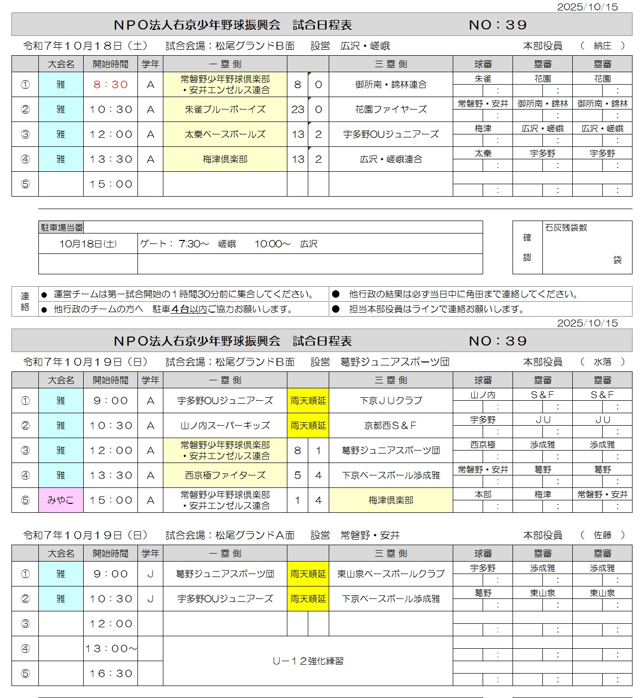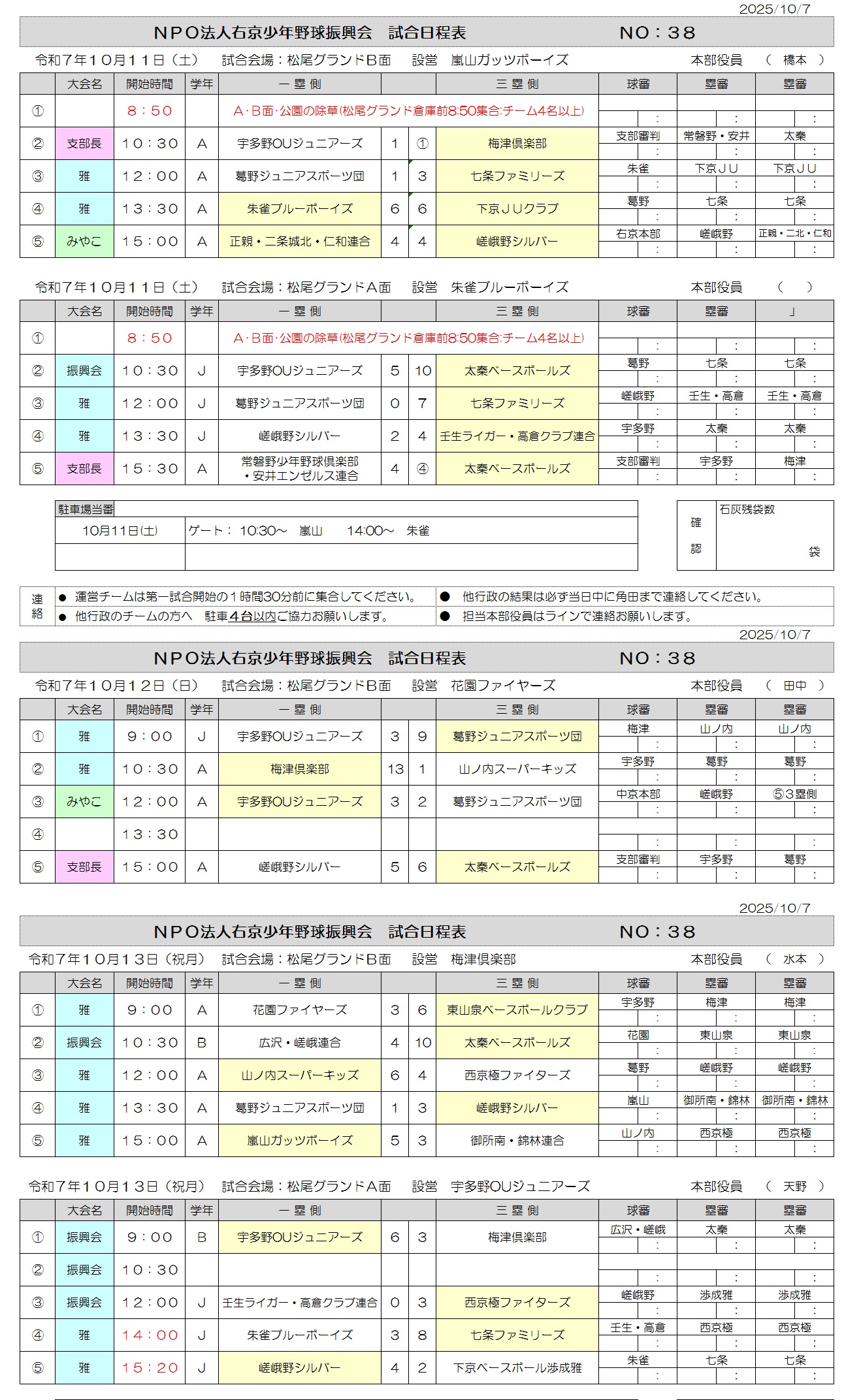 お知らせ2025年版 10/18(土)、10/19(日)の結果 10/11(土)、10/12(日),10/13(月祝)の結果 10/6(土)、10/7(日)の予定(変更版) 9/27(土)、9/28(日)の結果